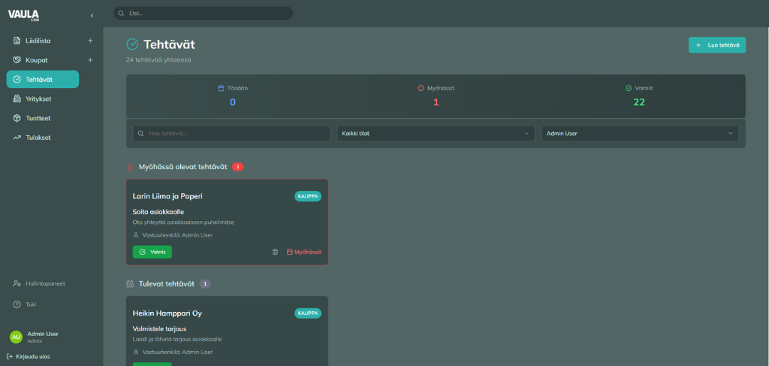 Vaula CRM on tehokas, kaunis ja yksinkertainen käyttää.